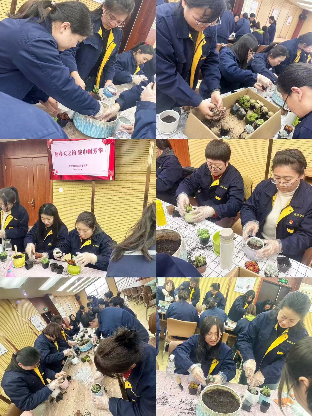 本次活動分為三個環(huán)節(jié),首先開展了“萬物向新,手植春光——多肉微景觀DIY種植”活動。多肉一直被認(rèn)為是堅韌,頑強(qiáng)不屈和表達(dá)無私愛意的象征,正如同作為女性、作為妻子、作為母親的形象。大家親手把一顆顆翠綠的多肉用自己的創(chuàng)意連同期許與美好栽種進(jìn)花盆里,體驗盆栽帶來的樂趣,感受自然與生命的力量,植此青綠,擁抱自然。